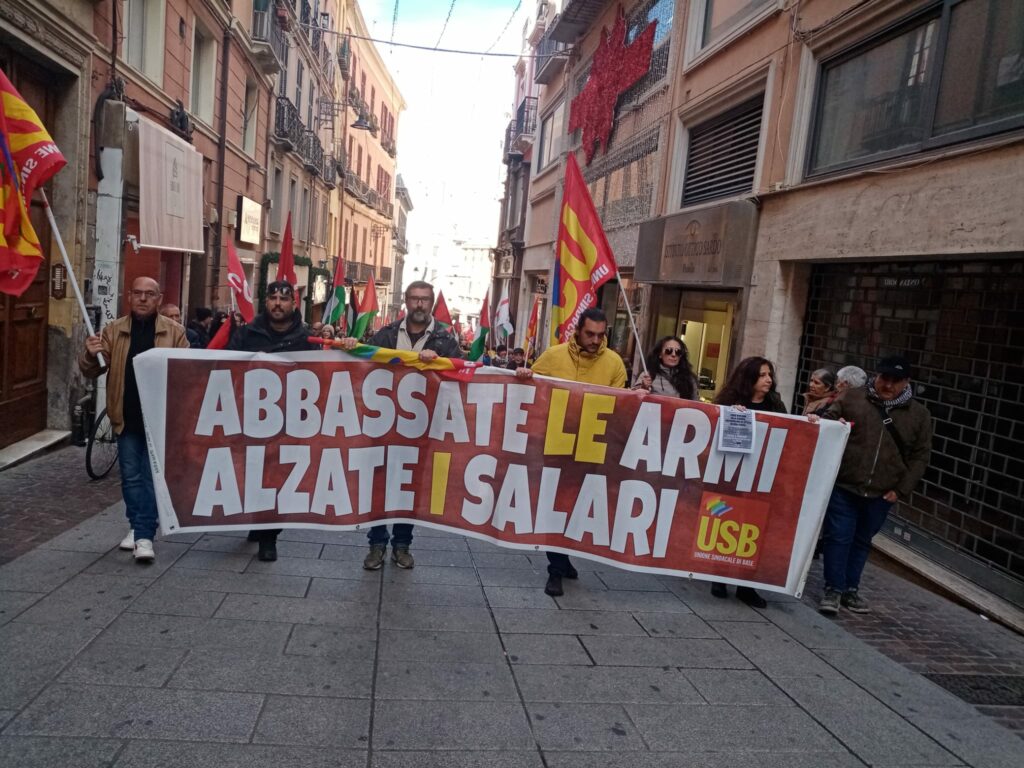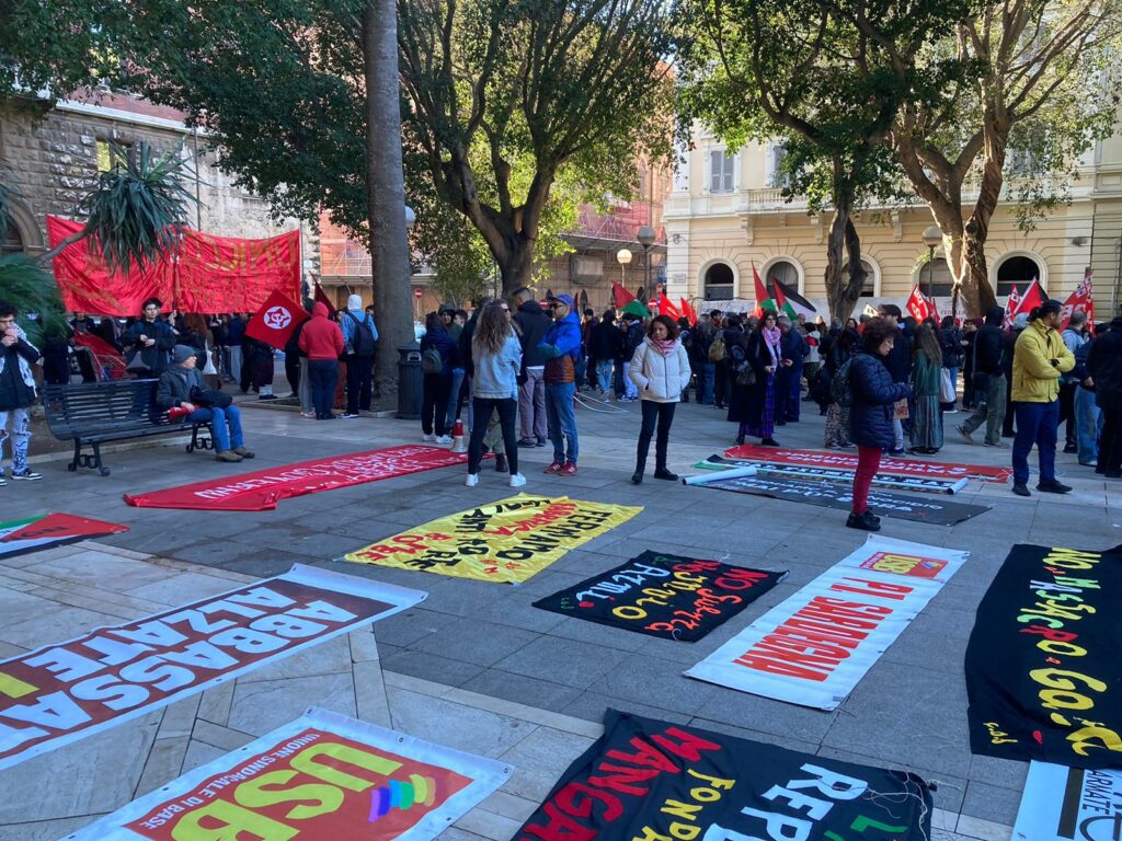 Come in altre trenta città italiane, anche a Cagliari si è svolta una manifestazione con corteo in occasione dello sciopero generale proclamato da vari sindacati di base, tra cui Cobas e Unione Sindacale di Base, contro una legge finanziaria di guerra, il riarmo e il conseguente impoverimento tutto il settore sociale (sanità, assistenza, istruzione, casa, ambiente) e degli stipendi di tutti i lavoratori, compresi dipendenti pubblici, erosi dall’inflazione. Nelle piattaforme dello sciopero apparivano tra i primi punti la fine della collaborazione militare con lo stato d’Israele, la fine del genocidio in corso dei palestinesi, la truffa del cosiddetto “piano di pace” a Gaza, e la necessità di un vero piano di aiuti, di cessate il fuoco e garanzia d’incolumità per la popolazione stremata.